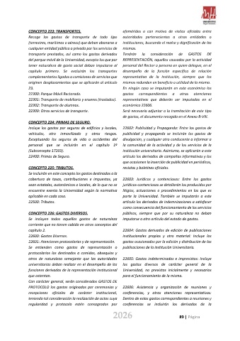 Se entienden como gastos de representación o publicaciones de la institución Universitaria.