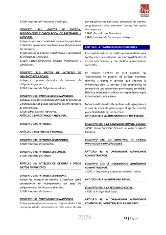 31100: Gastos de Emisión, Modificación y Cancelación Este capítulo incluye los créditos presupuestados para