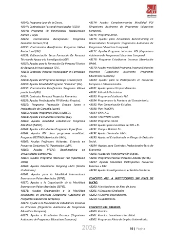 48146: Programa Juan de la Cierva. 48174: Ayudas Complementarias Movilidad PDI
