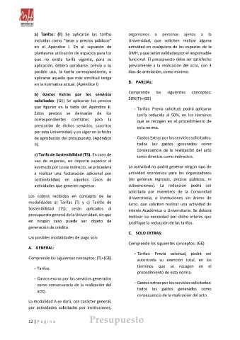 incluidas como “tasas y precios públicos” Universidad, que soliciten realizar alguna