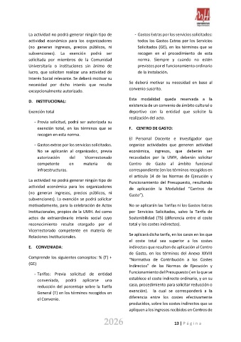 Institucionales, propios de la UMH. Así como por Servicios Solicitados, salvo la Tarifa de