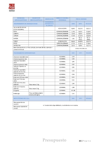 MANTENIMIENTO DE ANIMALES EN SEA DISPONIBILIDAD UMH OPI´S PRIVADOS