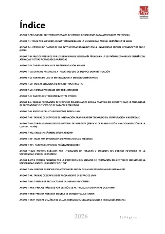 ANEXO T-I: TASAS POR SERVICIOS DE GESTIÓN GENERAL DE LA UNIVERSIDAD MIGUEL HERNÁNDEZ DE ELCHE