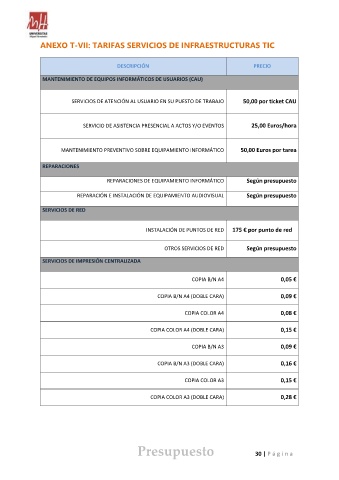 ANEXO T-VII: TARIFAS SERVICIOS DE INFRAESTRUCTURAS TIC