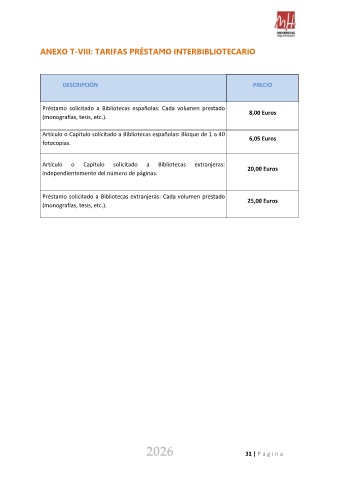 ANEXO T-VIII: TARIFAS PRÉSTAMO INTERBIBLIOTECARIO