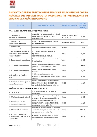 ANEXO T-X: TARIFAS PRESTACIÓN DE SERVICIOS RELACIONADOS CON LA