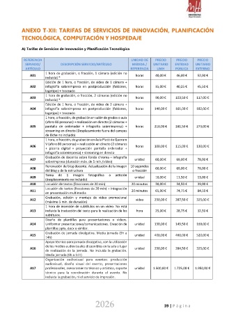 ANEXO T-XII: TARIFAS DE SERVICIOS DE INNOVACIÓN, PLANIFICACIÓN