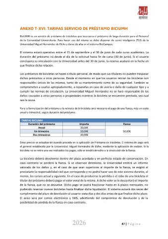 ANEXO T-XVI: TARIFAS SERVICIO DE PRÉSTAMO BICIUMH