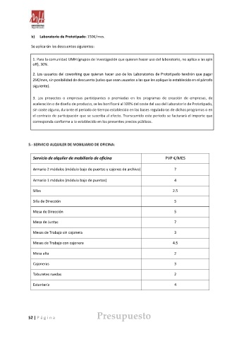 52 | P á gi na Presupuesto