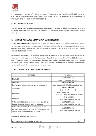 1.- CONTRATO EMPRESA ASOCIADA: 25 €/mes. (domicilio social en el Parque y servicios asociados). Este servicio
