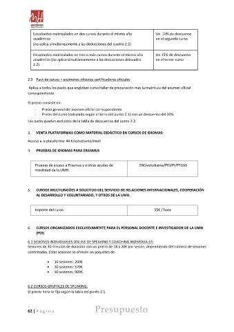 62 | P á gi na Presupuesto