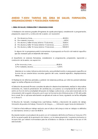 ANEXO T-XXIV: TARIFAS DEL ÁREA DE SALUD, FORMACIÓN,