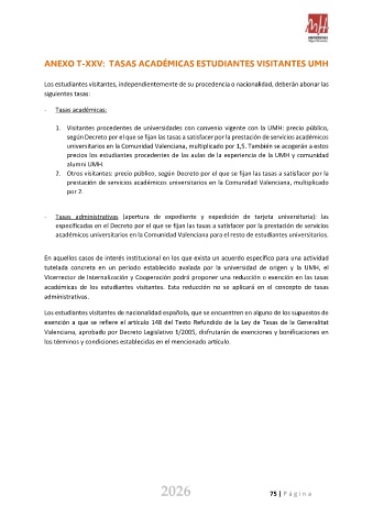 ANEXO T-XXV: TASAS ACADÉMICAS ESTUDIANTES VISITANTES UMH