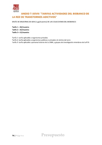 ANEXO T-XXVIII “TARIFAS ACTIVIDADES DEL BIOBANCO DE