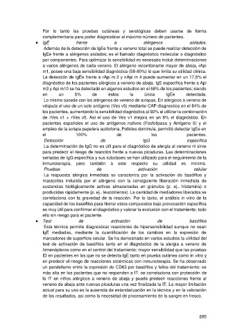 Además de la detección de IgEe frente a veneno total se puede realizar detección de