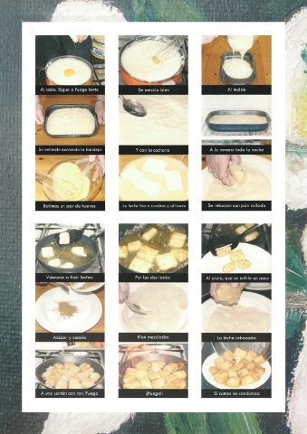 Y con la cuchara La leche fría a cuadros y al huevo Se rebozan con pan rallado Bien mezclados
