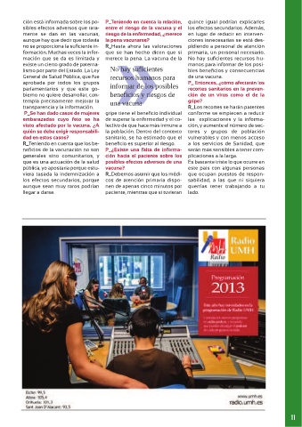 mación que se da es limitada y merece la pena. La vacuna de la No hay suficientes recursos hu-