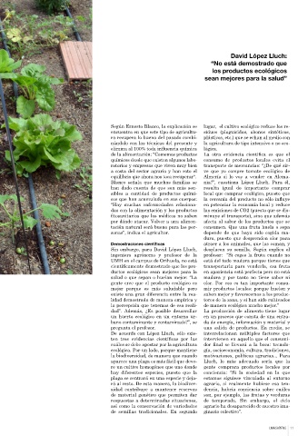 Según Ernesto Blanco, la explicación se lugar, el cultivo ecológico reduce los re-