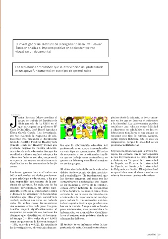 colegios participantes, un grupo expe- señala Javier Esteban. El documental
