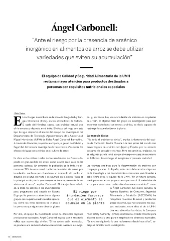 sénico en el arroz”, explica Carbonell. El trabajo desarrollado arroz para determinar cuáles absorben menos arsénico”, cuen-