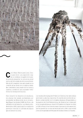 Para convertir los desechos en esculturas, Los residuos de la playa de El Saler, en Valencia, han sido la base