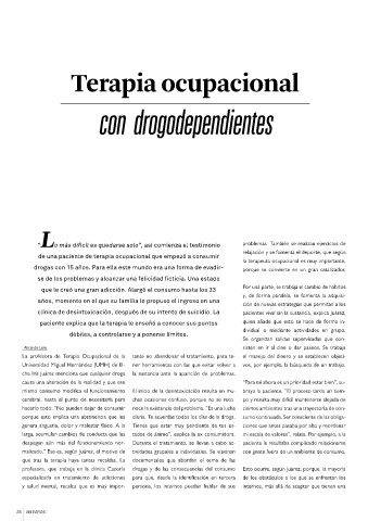 La profesora de Terapia Ocupacional de la tante no abandonar el tratamiento, para te- el manejo del dinero y se establecen objeti-