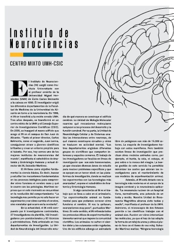 dad de neurobiología del desarrollo estu- Uno de los edificios alberga un animalario dor Martínez matiza: “ninguna tecnología