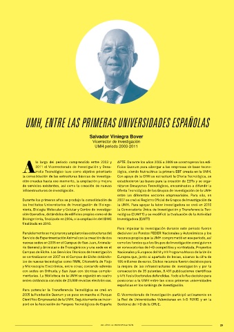 los Institutos Universitarios de Investigación de Bioinge- la UMH. Para apoyar la labor investigadora se creó en 2010