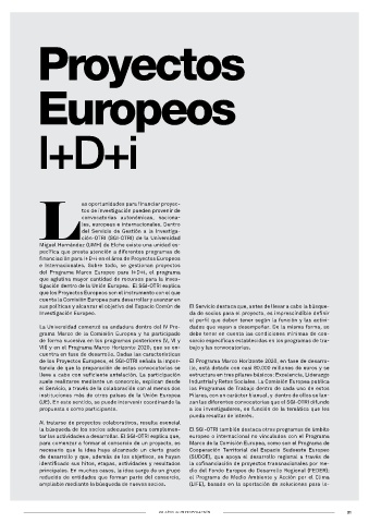 (UE). En este sentido, se puede intervenir coordinando la zan las diferentes convocatorias que el SGI-OTRI difunde