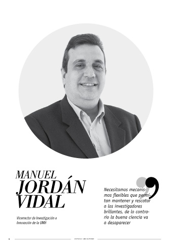 manuel jordán Necesitamos mecanis- vidal mos flexibles que permi- tan mantener y rescatar a los investigadores brillantes, de lo contra- Vicerrector de Investigación e rio la buena ciencia va Innovación de la UMH a desaparecer 6 ESPECIAL UMH SAPIENS