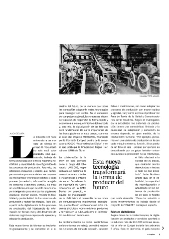 a partir de la digitalización de los procesos les, que facilitarán la interconexión entre má- proyecto AUTOWARE”, subraya el experto.