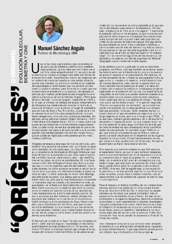 (I OrIgIns) Evolución molEcular, biomEtría y cinE Uconflicto ciencia/espiritualidad. En las películas del deposita su mirada en una foto de la portada de National