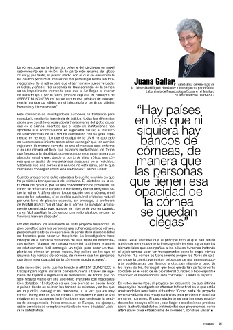 ra Gallar, y añade: “La ausencia de transparencia de la córnea la Universidad Miguel Hernández e investigadora principal del