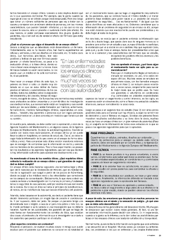Un ensayo clínico debe hacerse siguiendo una normativa legal y ética • Fase 2: si la anterior fase es satisfactoria, se pasa a un se-