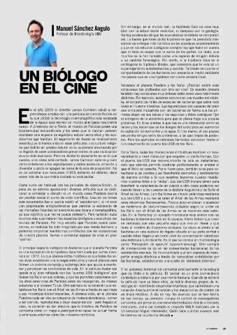 El principal aspecto biológico de Avatar es que el planeta Pandora de interacciones se da en las comunidades bacterianas de los