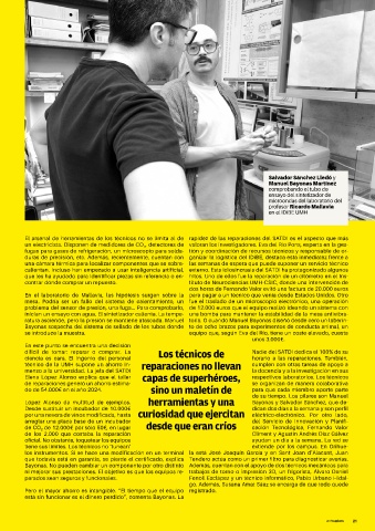 que les ha ayudado para identificar piezas sin referencia o en- hitos. Uno de ellos fue la reparación de un citómetro en el Ins-
